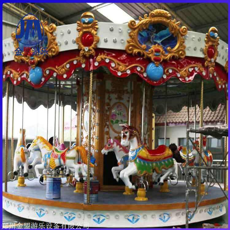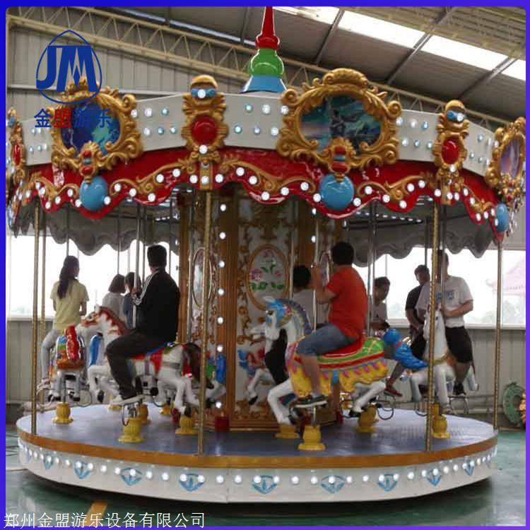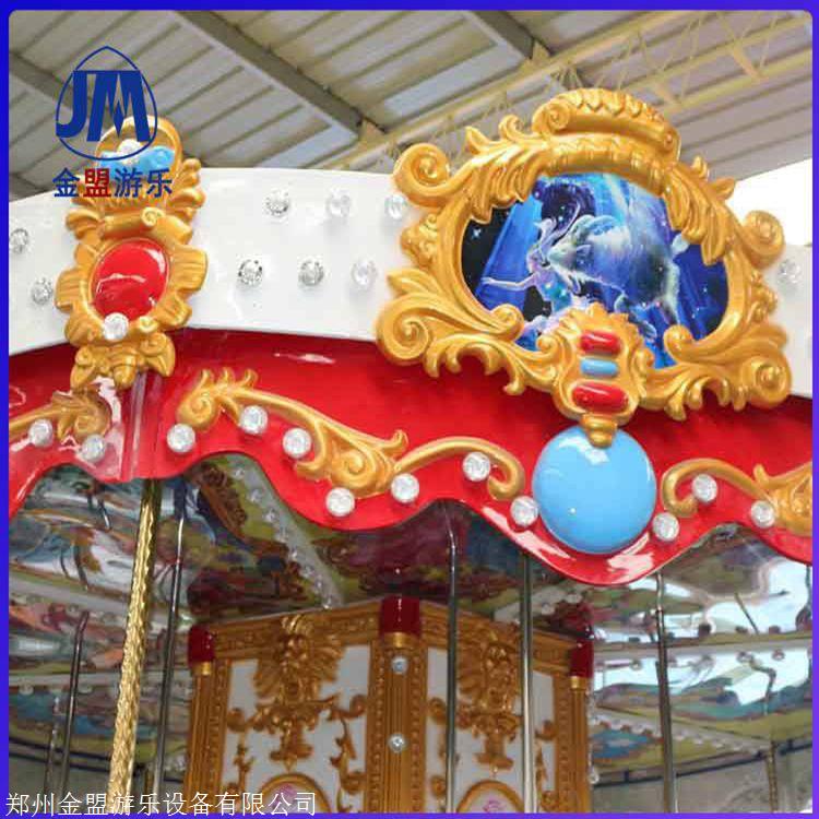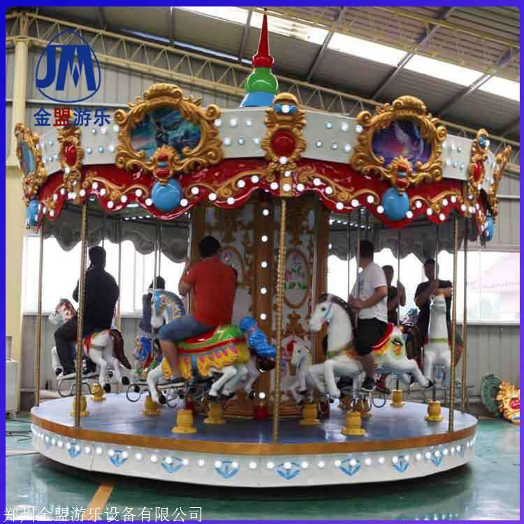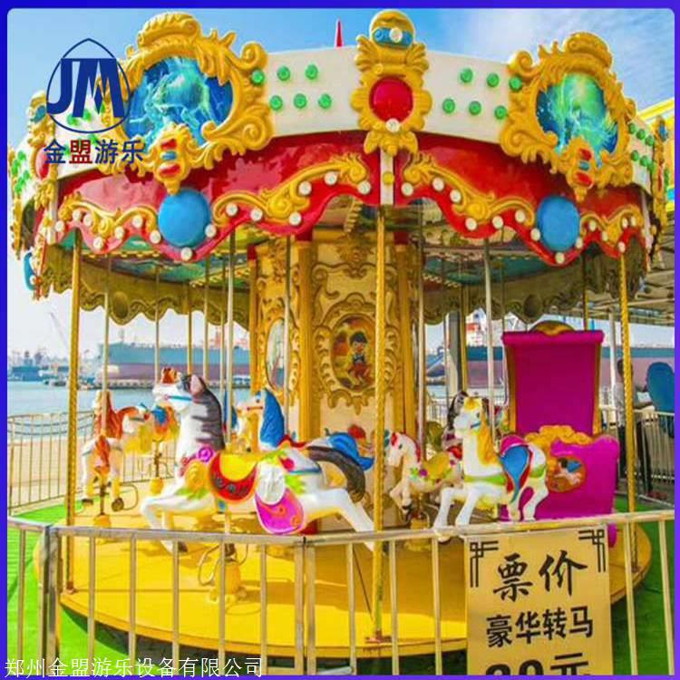 欧式旋转木马是游乐场标志性的设备之一,这款设备在外观上愈加的豪华、大气一起承载人数也非常多,所以在那些人流量大的游乐场里边经 营是一个不错的选择,这款转马制造工艺比较复杂所以制造的周期相对较长,因此想要选购的话就需要提早很久定制才能不耽搁运用。