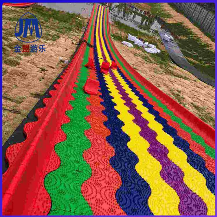 彩虹滑道色彩绚丽的滑道就像是一道彩虹挂在山坡上,因此也称之为彩虹滑道!从长长的滑道飞驰而下,时而急促、时而舒缓,整个身体仿佛是从彩虹中穿过一般,惊险又妙趣横生!真的是人生中难能可贵的游玩体验!而对于游客年龄层次而言,不管是儿童、还是年轻人、中年人皆可游玩!因此七彩滑道所面对的游玩对象还是比较广的!在这里,你可以跟朋友比速度、跟亲人、跟爱人手牵手感受这一路的浪漫,共享这一美好时光!七彩滑道的推出是为原本荒芜的山坡带去了生机。鲜艳的七彩滑道让山坡实现变七彩乐园,而对于投资者来说本就闲置的场地可以加以利用,实现营收!那么哪些地方可以建七彩滑道呢?其实投资者只要有一个具有一定坡度的场地就可以建造。城郊公园、空地、黄坡、坑道、大型景区、山庄、游乐园、滑雪场等皆是七彩滑道建造的不错之地!