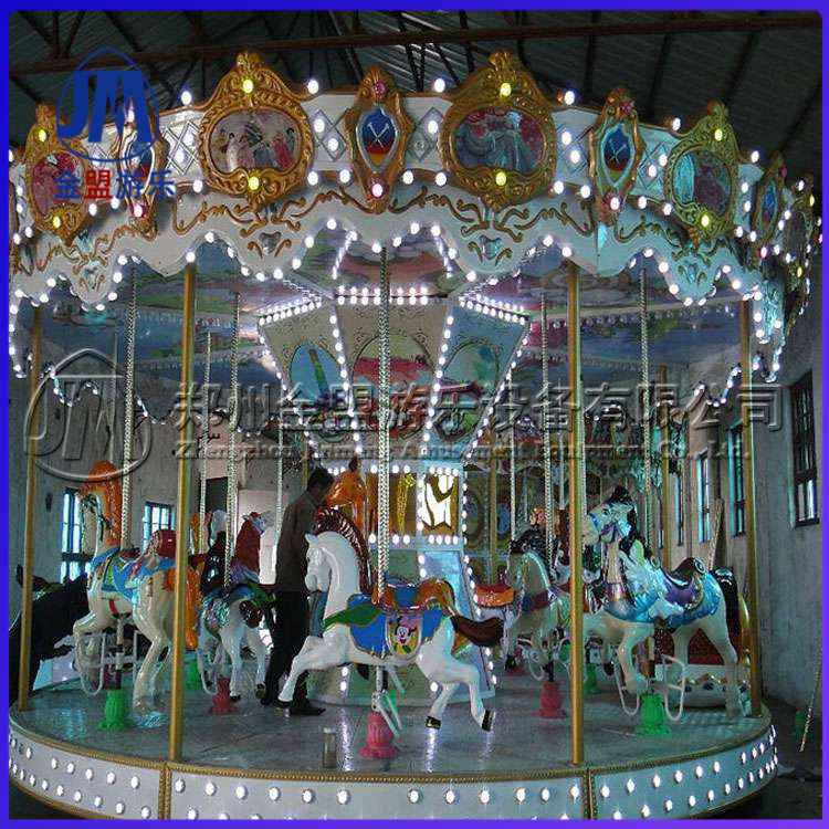 首先我们来看豪华转马有哪些优点,豪华转马造型美观,占地面积小,基本上是无噪音的,乘坐较为舒服,所以一直以来深受欢迎。除了这些优点,豪华转马现在在玩法上还有改进,还加上了绚丽的灯光和美妙的音乐等功能,可以吸引更多的游客前来玩耍。