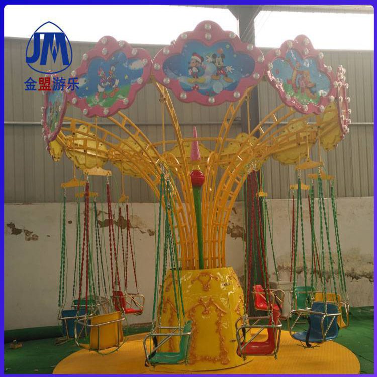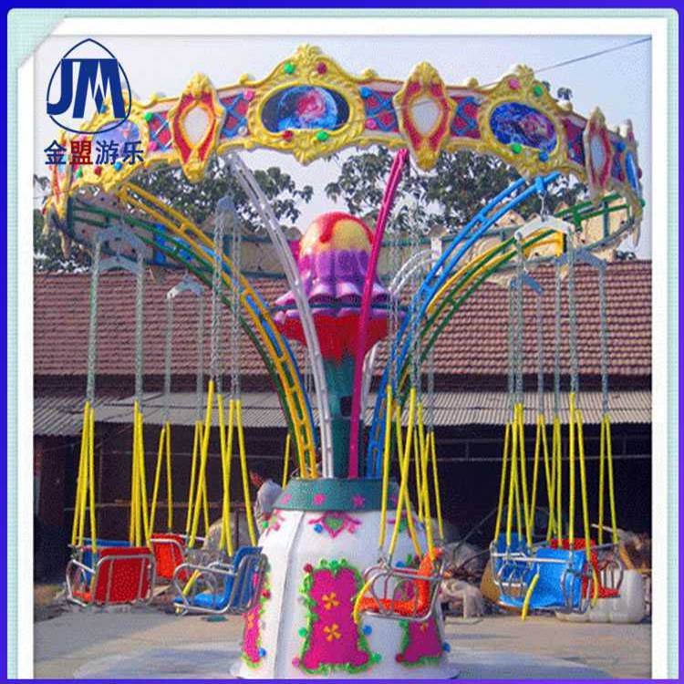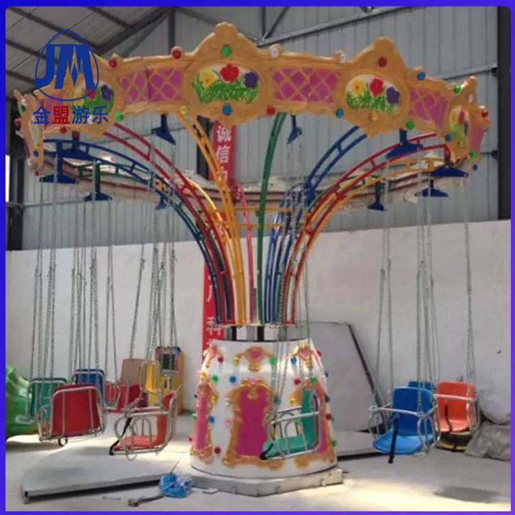 豪华飞椅是一种新颖的飞行塔类游乐设施,按座位数量来分可分为36座,24座,16座等,回转速度每分钟10-12转(可调节),豪华的外观装饰,有趣的运动形式,游客乘坐在垂挂的吊椅上,随转盘的运动徐徐升起,仿佛翱翔于天际,又如置身于波荡起伏的大海中,其乐无穷。郑州市金盟游乐设备有限公司是一家价值观和使命感驱动的公司。自成立之初始终把“唤醒游乐设备行业企业家责任,提升游乐设备信誉,增强游乐设备产品创新,提高游乐设备产品质量”作为企业发展的ling魂和动力。