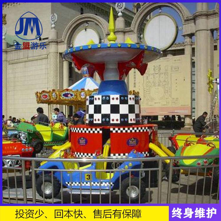狂车飞舞是深受广大儿童、成年人欢迎的一种游乐项目,设计新颖、结构独特、造型美观。新颖的灯饰,动听的音乐使人们在游玩中既能体验眩晕中的快乐,又能体验旋转弹跳的惊险,给人们以轻松刺激的感觉。本设备广泛用于各种室内外游乐场,商场休闲区,家庭中心,公园以及广场等。狂车飞舞是一种赋有新创意的新型旋转类游艺机,它除了具有传统的旋转类游艺机的特点,同时还注入了在运动过程中上下自由起伏的特点,给乘客一种与众不同的全新乘坐感受,是一项比较好的游乐设施投资选择。