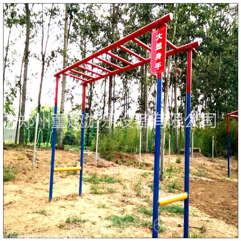 体能乐园主要设备:攀岩网、v型桥、滑索、轮胎桥、步云桥、圆秋千、圆吊椅、蜻蜓点水、云中漫步、龙洞、弹跳床、跷跷板、你追我赶、勇往直前、滚筒、荡荡板、摇摇椅、摇摇马等。