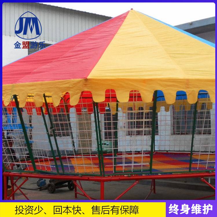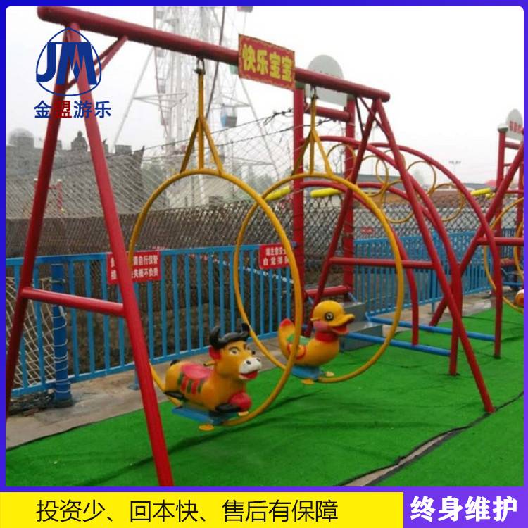 郑州金盟游乐设备有限公司主要经营产品有:旋转木马、儿童轨道小火车、观光小火车、海盗船、三维太空环、pa品牌最佳真人电游pa品牌最佳真人电游、弯月飞车、儿童立交战车、袋鼠跳、自控升降飞机、鲨鱼岛、迷你穿梭、跟踪追击、万人蹦床、充气水池、欢乐喷球车、鲤鱼跳龙门、迪斯科转盘、旋转飞椅、碰碰车、乐吧车、疯狂牛机、旋转咖啡杯、电瓶车、充气城堡、儿童蹦极、水上游乐设备、公园游乐设备、游乐场设备、室外拓展训练设备、体能乐园等百余种产品,品种规格齐全、结构合理、质量优良,深受广大用户的好评,产品的各项指标均达到国家规定标准。