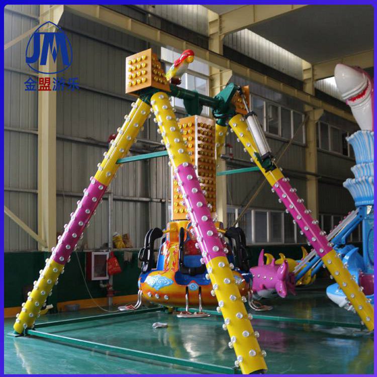 属于大型游乐设备、新型游乐设备、室外游乐设备、公园游乐设备、游乐场设备。又名流星锤,是目前国际上流行的新型游乐设备。该设备造型美观,结构科学,气势磅礴。小摆锤是一种大型的游乐设备,常见于各大游乐园。游客坐在圆形的座舱中,面向外。通常,小摆锤以压肩作为安全束缚,配以安全带作为二次。座舱旋转的同时,悬挂座舱的主轴在电机的驱动下做单摆运动。小摆锤的运行可以置身其上的游客惊心动魄。小摆锤属于刺激型的游乐设备。游客乘坐在旋转的摆锤上往复摆荡,令人目眩神迷;游客往往情不自禁的发出惊呼与欢笑,极大的提高了整个游乐场的欢乐气氛,使许多游客留连忘返,不愿离开。