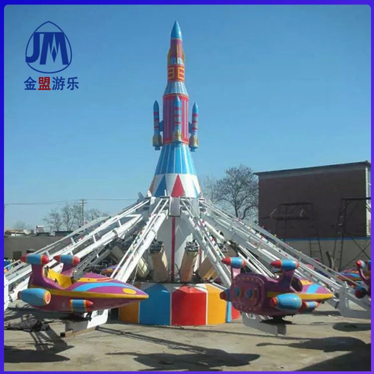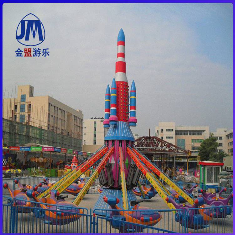 是种游客可以自己控制升降的现代游乐举措措施,飞机围绕中央旋转,并逐渐上升,游客在飞行中紧握操作杆随意升降