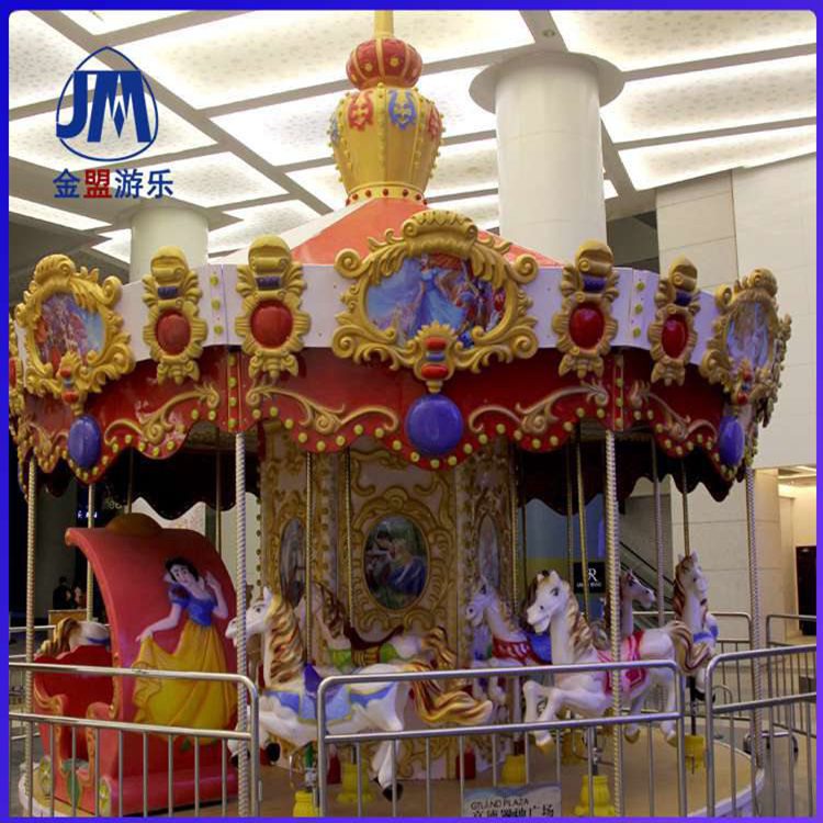 郑州金盟游乐设备厂里加工焊接的铁件是都是我们从事多年儿童玩具制作的技术工人加工成的,在每个客户的眼中,我们的铁件都是非常的,都是令人满意的。我们的每步都是力求做到更好,设备上的每个步骤都严格仔细完成。它是种垂直轴类单转体起伏型游艺机,是模拟马厅的游乐活动而设计的, 豪华转马该游艺机的上部设有彩色的锥形顶棚,顶棚的周圈装有五彩缤纷的玻璃钢装饰板,更显豪华气派,俨如华丽的马厅。