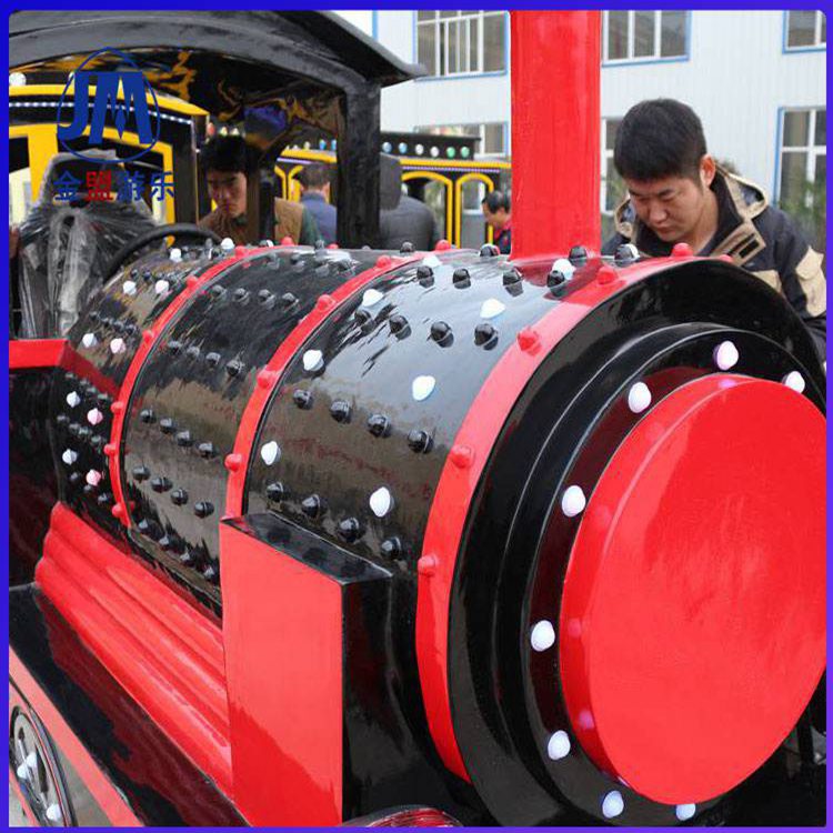 无轨观光小火车是金盟游乐设备公司新研发的款小火车类产品,在设计的过程中严格按照游艺机和游乐设施的规定,所以在质量上完全不用担心。该款观光小火车游乐设备从投入市场以来,受到了广大游客的钟爱,虽然其危险系数比较低,但是在乘坐的时候仍然需要注意。