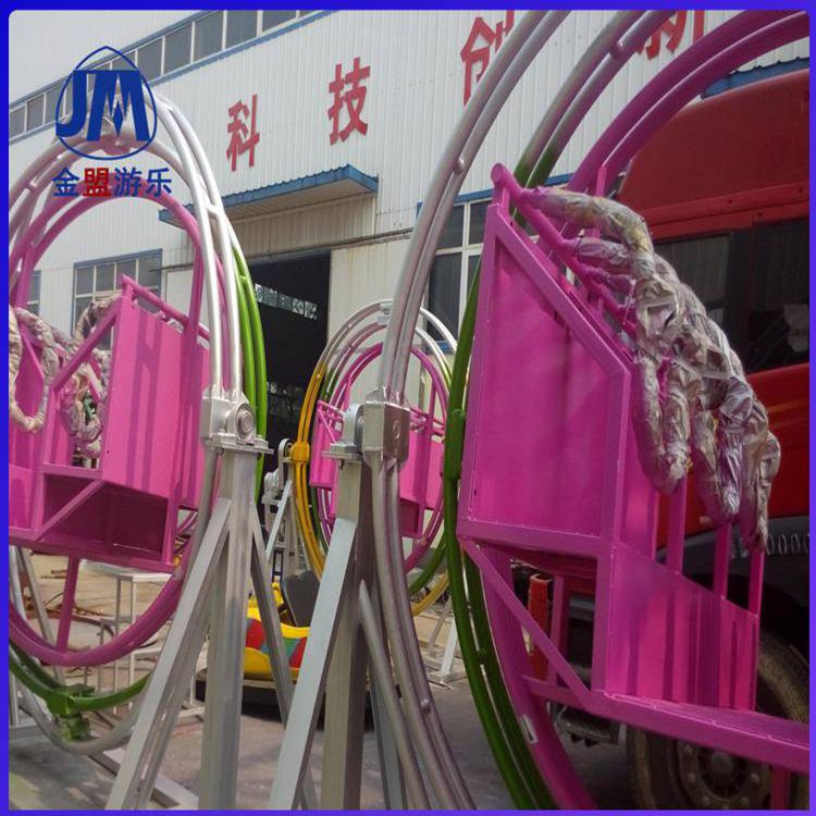 三维太空环 ,时间可以随乘客需求制定。开始转动先响3秒钟铃声,随着转动开始铃声的结束机器人开始转动了。360度时快时慢,内环随着外环的转动二环和三环时而正转,时而翻转,时而左转,时而右转。给人的感觉是飘飘欲醉。这就是三维太空环给人的感受。专利产品采用纯无缝钢管制作不会因为负重而出现断裂。齿轮和链条的传动取代和皮带的传动。产品转动起来性能更稳定。太空环,又名三维滚环。