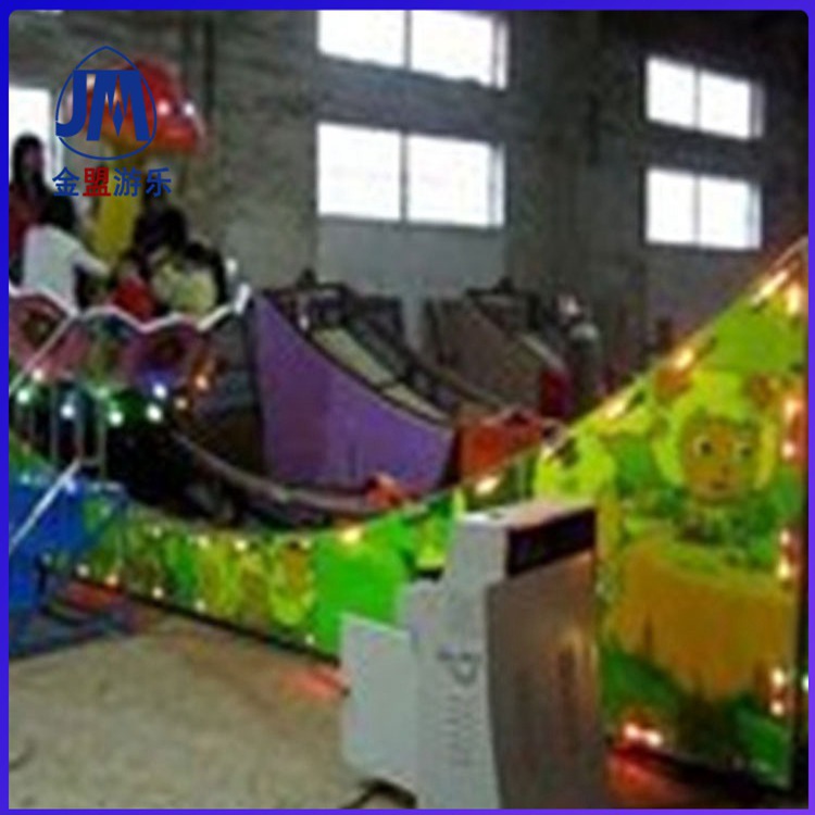 弯月飘车是一款非常个性的游艺机,它也算是一款轨道是游乐设施,轨道呈弯月形,座舱是宝马型的座舱,也有莲花形的,可根据客户的不同选择制作。它的运行方式跟海盗船有点儿类似,海盗船主要借助上面吊着的力,下面有一个轮子作为辅助力,弯月飘车是靠下面的轨道的力来运行。它在顺着轨道来回滑行的同时,下面的座舱也会转动,是非常刺激好玩的游艺设备。