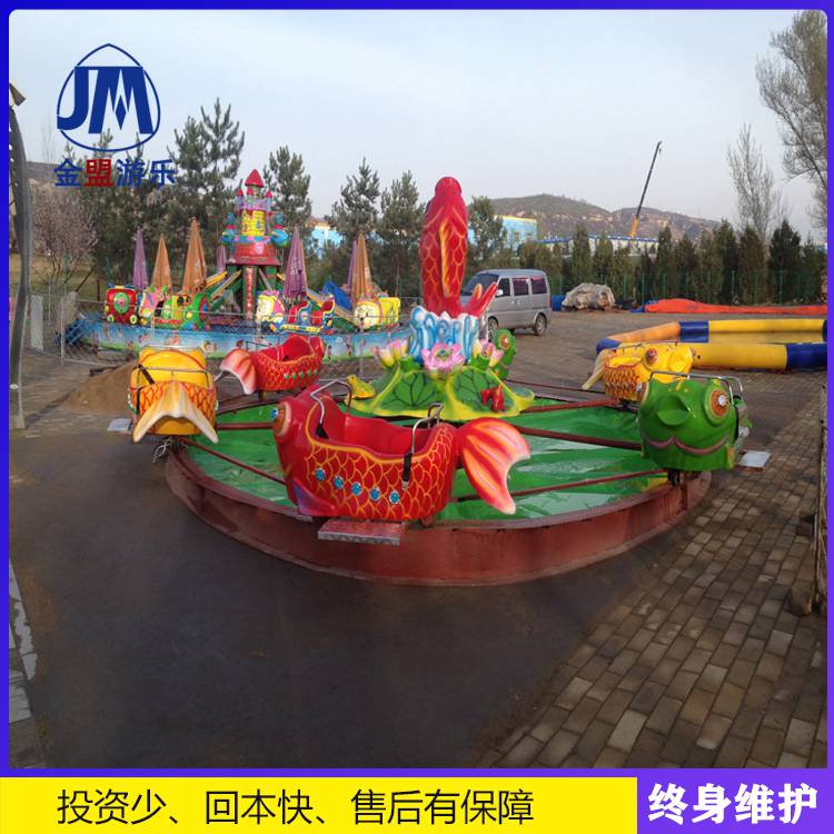 鲤鱼跳龙门每条鲤鱼座舱上有两把水抢,扣动开关可射水,并发射激光,打在中心动物身上,动物可喷水并配有音乐,新奇好玩,激光的应用使您在寒冷的冬季也可经营。是一款深受广大青少年及儿童喜欢的游乐设施。