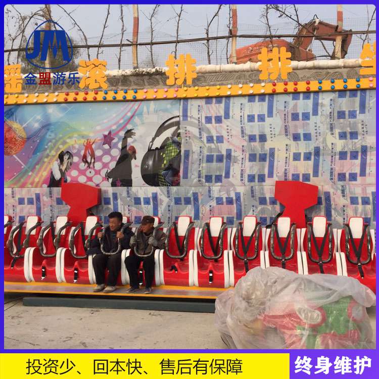排排坐的运行方式是类似于阿拉伯飞毯,不过是半个阿拉伯飞毯,座位是一排,运行方向是竖着运行的,就像是时钟的指针一样,不过它会顺时针、逆时针两个方向旋转,非常好玩。排排坐是传统设备阿拉伯飞毯的升级换代产品。尽情享受狂欢的节奏。体验失重给你带来欢乐和刺激。不费心的项目,有6座,8座,10座,12座等。今年,郑州金盟游乐针对摇滚排排坐实行豪华定制版,灯光、配饰等选用国内优良供应商品牌,在保证摇滚排排坐有没灯光流线的同时,蕞大程度地保障了摇滚排排坐的安全。