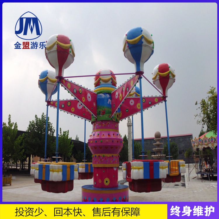 该套设备的设计新颖、独特,具有时代气息,吸引力强,乘客进入座舱,刺激好玩的桑巴气球,犹如登上热气球开始一次快乐的旅行。此项目以少年儿童游客为主,桑巴气球游乐设备性能优异,操作简单,造型新颖,深受市场和儿童的欢迎。桑巴气球新型公园儿童游乐设备由郑州金盟游乐设备有限公司提供。