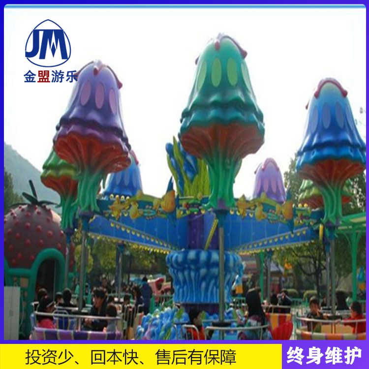 摇头逍遥水母是一款外观漂亮,性很强的中型游乐设备,非常适合户外安装使用,整体构造美观大方,气势宏大,非常适合大场地,游乐场或者需要更新换代的朋友们的需求。逍遥水母在主轴旋转的同时,游乐,还可以高低起伏,所以起名字为摇头逍遥水母,性和观赏性都非常强,也比老款的逍遥水母增加了一定的刺激性,特别适合现代游乐行业。逍遥水母的水母造型和座舱的颜色也一直在改进,相信越来越多的人会在场地有限的基础上来选择这套设备。