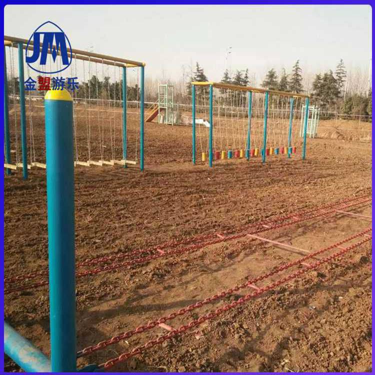 地面拓展器械用料 1.拓展器材所有钢管部分均是使用的国家标准的无缝管,强度完全超越直缝管立柱,主体立柱更是采用的直径180mm,壁厚6mm的国标无缝管。 2.所有管材的的焊接均是采用的600mm钢材套筒焊接工艺。使得焊接部位强度更高于其他部位。器材的整体性大幅度提升。 3.所有的焊点部分要经过重复检测,杜绝隐患的发生。 4.器材在焊接加工成型之后会经过一道非常重要的工序,也是市场上少有的“喷砂除锈处理”,该经过高速金刚砂以及气流的撞击会使器材发出钢铁的亚白色的光泽,并在表面形成凹凸的触感,在喷漆的时候提供更多的附着面积,使漆面更加持久,从而让设备更加耐久。 5.器材均是采用的双底漆,双面漆的工艺,每道漆面喷漆时间间隔12小时。并且底漆是防腐蚀的,面漆是增加光泽以及保持色泽的。
