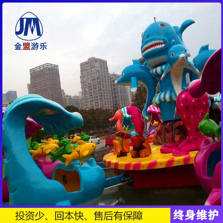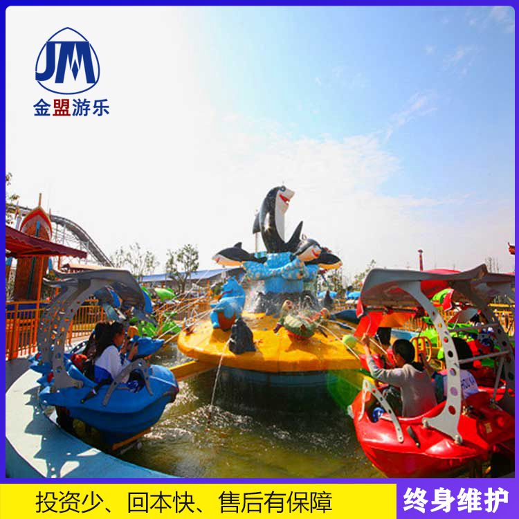激战sha鱼岛水上游乐设备是深受青少年、儿童欢迎的项目,其设计新颖,结构独特、安全省电、造型美观;新颖的装饰、动听的音乐,新款激战sha鱼岛采用玻璃钢工艺,跟美观,环保无污染,使人们在游玩时能体验水上运转中的快乐。“激战sha鱼岛”是一种旋转类游乐设备,可乘坐24人。当设备开动时,游客一边乘坐会旋转的飞船,一边可用船上的水枪或者激光she击sha鱼岛上的各个目标,当目标被击中后,便会做出喷水、举手等各种动作,姿态可爱,趣味性强。
