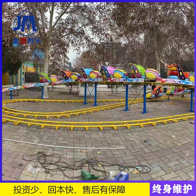 迷你爬山车属于轨道类产品,和其他的游艺设施传动方式不同,设备突然启动的情况下,有的乘客会容易受伤,为此,金盟游艺在设备上增加了软启动装置,卡通迷你穿梭,这样设备在启动的时候缓缓启动,停止的时候也慢慢停止,避免了急刹车,也避免了有人受伤!由于儿童游艺机具有一定的“吸客”作用,所以越来越多的商场、超市、购物中心、售楼处,开始引进双环迷你穿梭儿童游艺机。